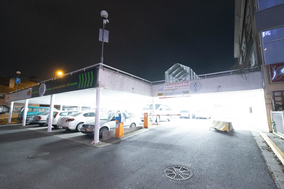 Po rekonstrukci krytého parkoviště OD Kvanto došlo k nahrazení původních světel se zářivkami za LED osvětlení. To má ovšem velmi výrazně přehnanou intenzitu.